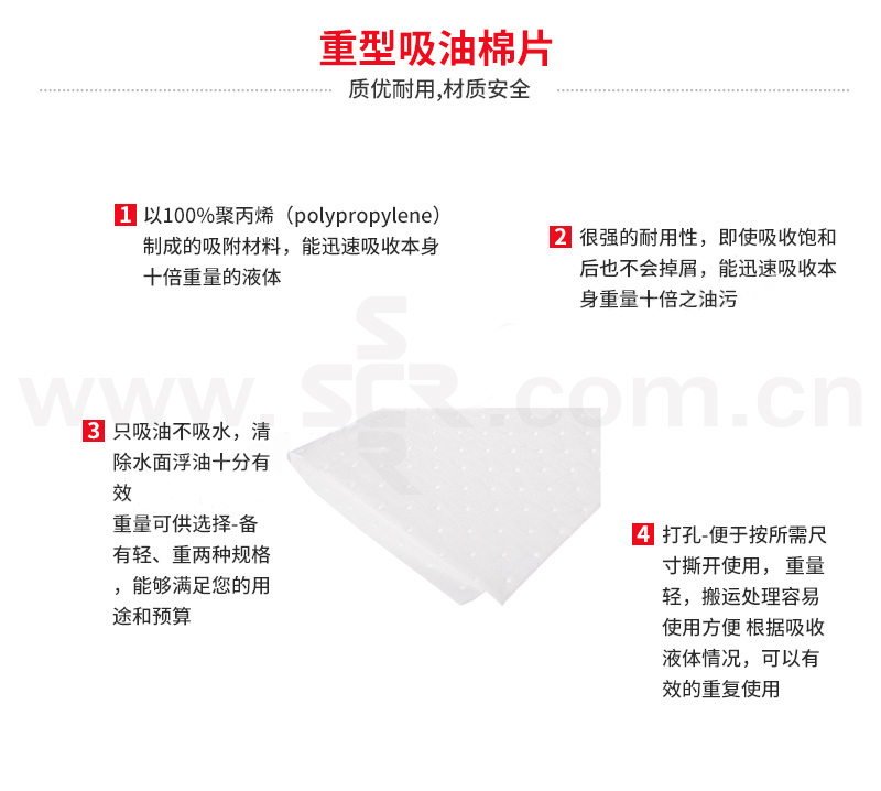 ·以100%聚丙烯(polypropylene)为原料制成的超细纤维吸附材料,能迅速吸收本身十倍重量的液体