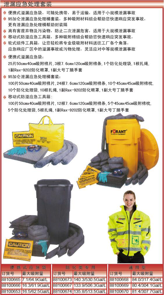 ·多种吸附棉组合帮助您快速响应突发事故,轮式组件工具箱,让您轻松将专业级吸附材料送往工厂各个角落,应急响应厂区中的溢漏事故或污物处理,灵活应对中等规模泄漏事故