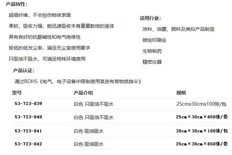 ·擦拭后不易留毛尘,满足无尘室环境需求,