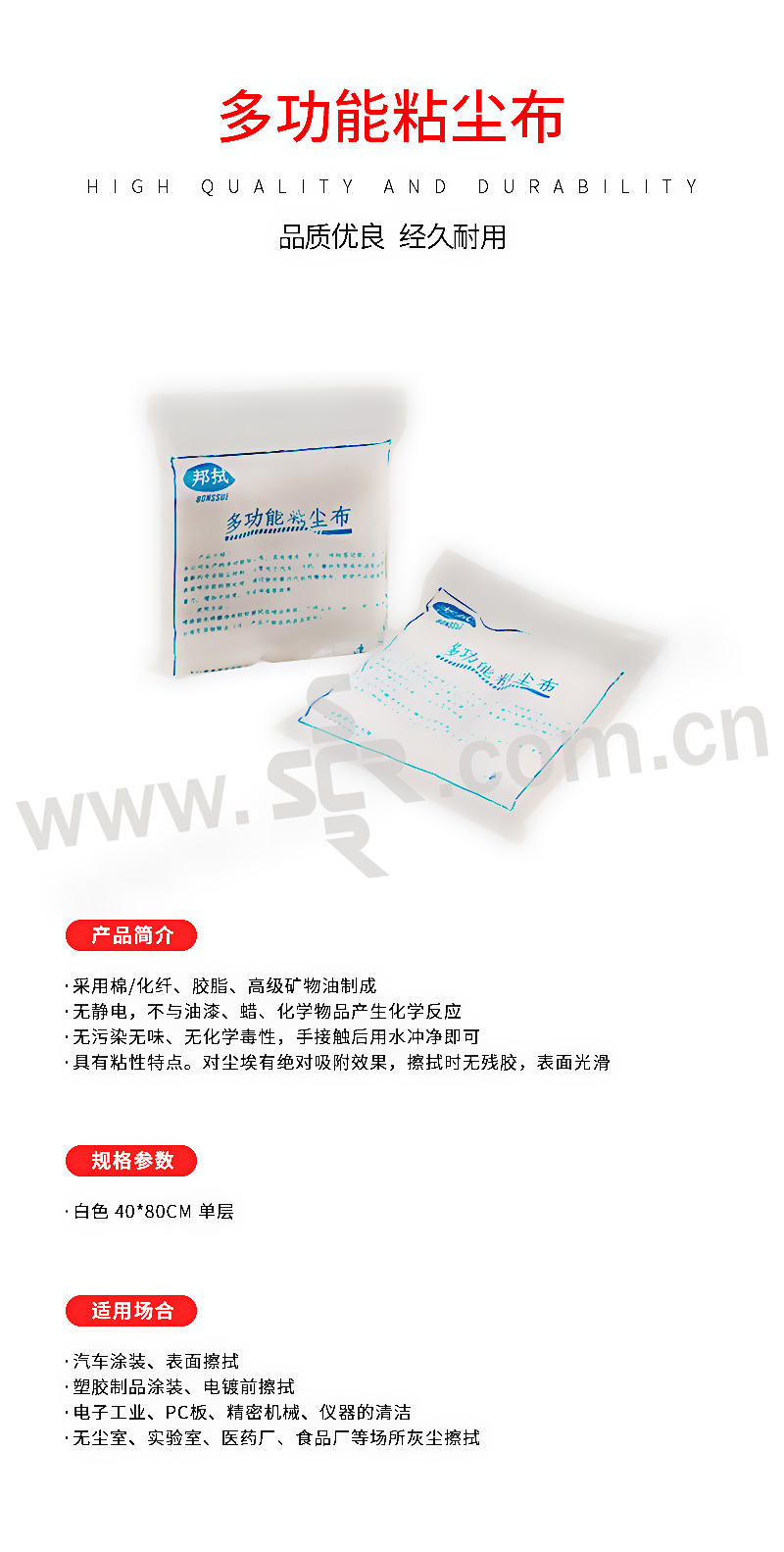 ·具有粘性特点。对尘埃有绝对吸附效果,擦拭时无残胶,表面光滑