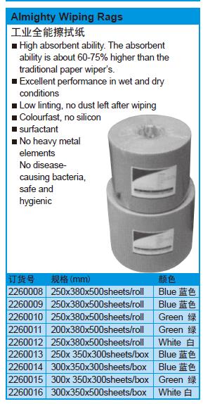 ·高吸水能力。的吸收剂能力比技能高60-75%传统纸质雨刷。干、湿性能优异条件绒毛低,擦拭后无灰尘残留不掉色的,没有硅表面活性剂,没有重金属元素没有疾病,导致细菌,安全卫生