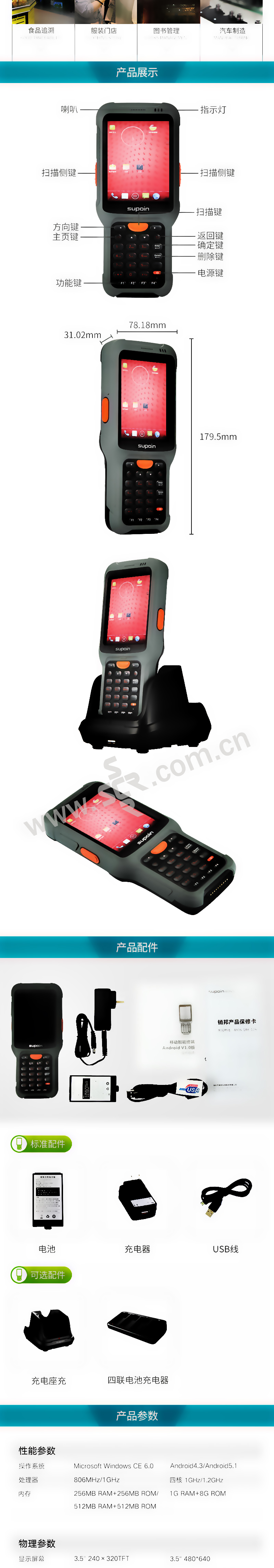 ·SUPOIN销邦,X5305LT3手持终端PDA移动智能终端盘点机数据采集器一维