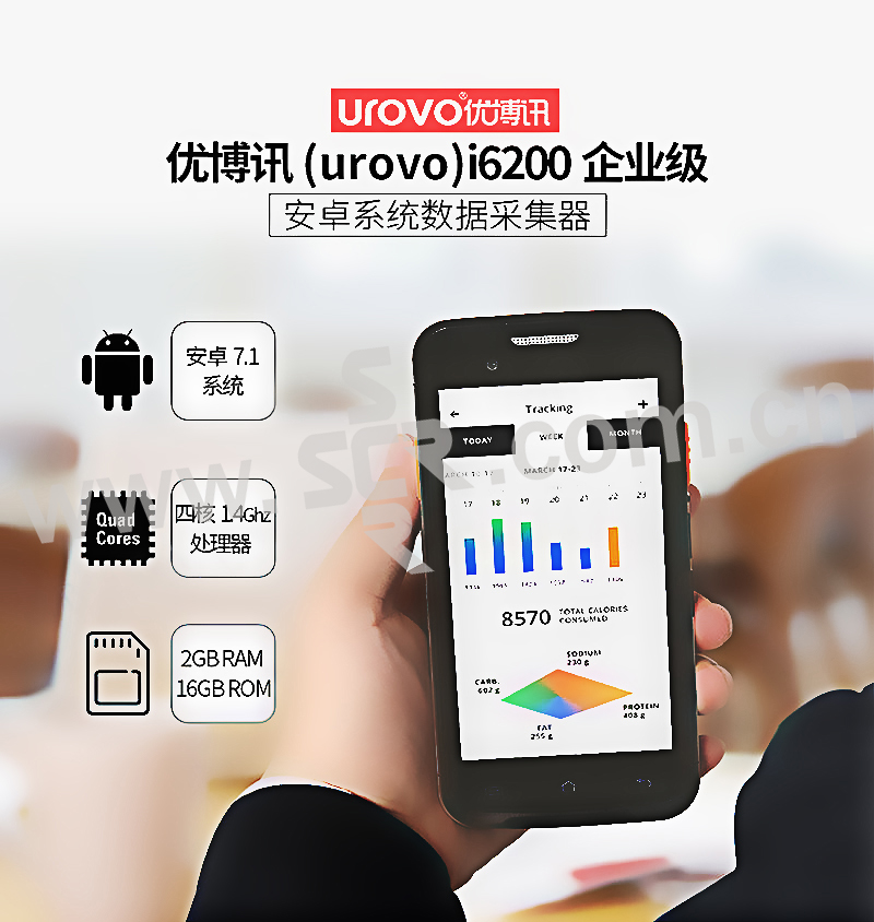 UROVO/优博讯 i6200Series手持数据终端 I6200SGWBPS4G-二维(5寸屏) 安卓7.1系统 i6200 带底座(WIFI+蓝牙+4G+NFC) 1把