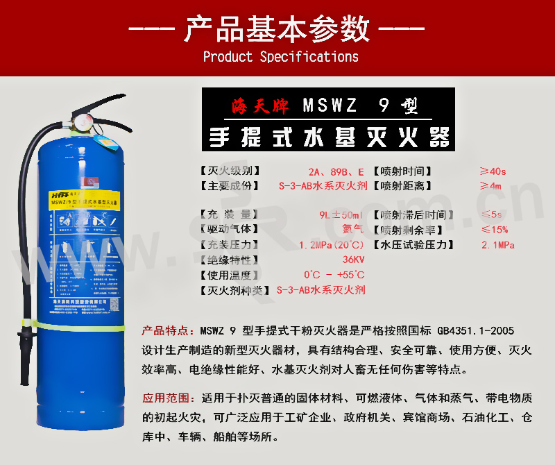 HTFF/海天消防 MSWZ/9水基灭火器 9L 1个
