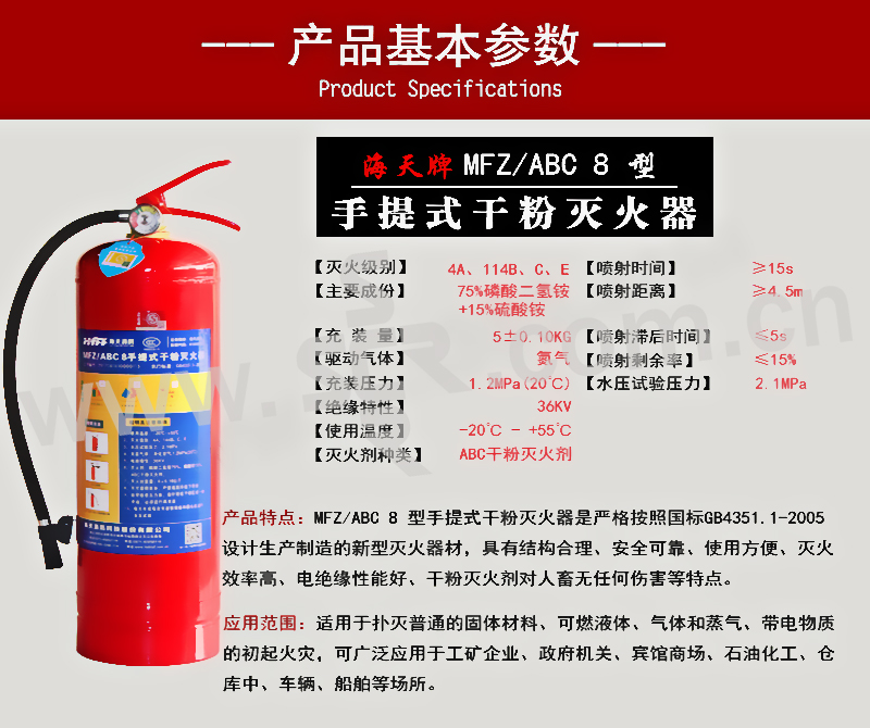 HTFF/海天消防 MFZ/ABC8干粉灭火器 8kg 1个