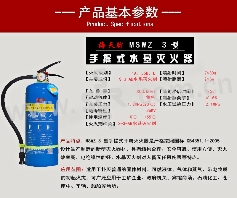 HTFF/海天消防 MSWZ/3水基灭火器 3L 1个