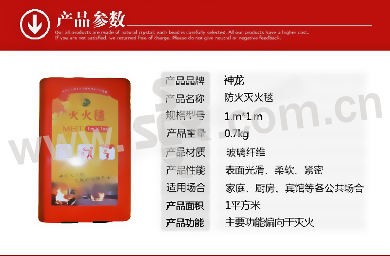 SHENLONG/神龙 玻璃纤维灭火毯 1m×1m 1×1m 白色 1盒