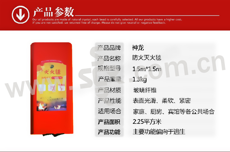 SHENLONG/神龙 玻璃纤维应急毯 1.5×1.5m 1.5×1.5m 白色 1盒