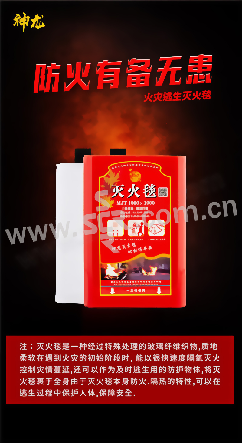 SHENLONG/神龙 玻璃纤维应急灭火毯 1×1m 白色 1块