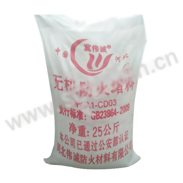 ·DW-A3-CD03型无机防火堵料是河北伟诚公司根据BG23864-2009标准研制成功的新型产品,该产品由无机材料加化学助剂混合而成,呈粉末状,具有强度高,耐水,耐腐蚀,无气味,施工方便等特点。无机堵料颜色为灰色,是较为普遍的颜色。