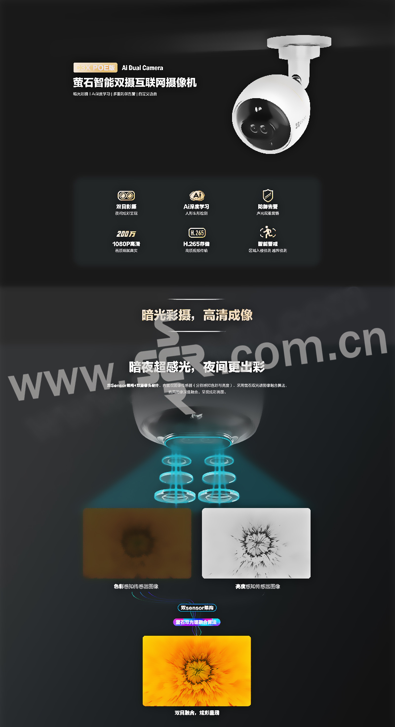 EZVIZ/萤石 C3系列智能双摄互联网摄像机 C3X-PoE 镜头焦距4mm 200万像素 1台