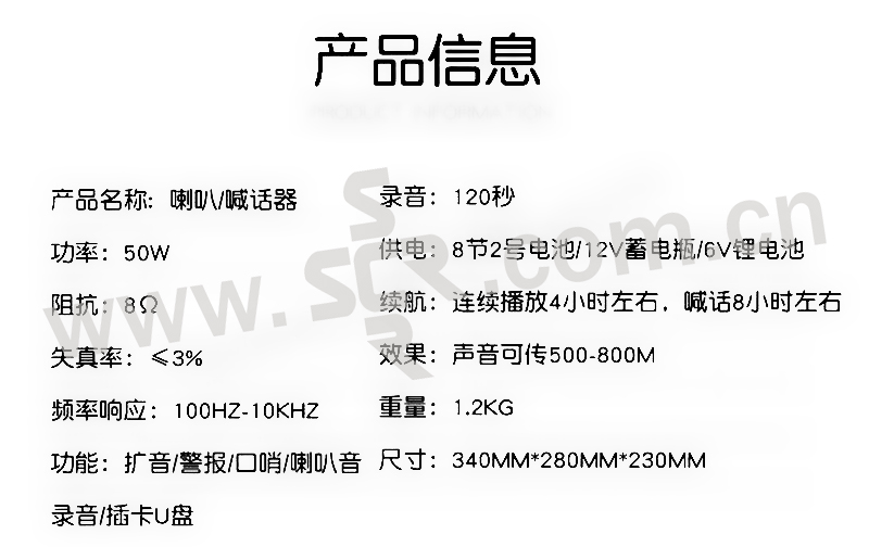 ·50W大功率,传播距离远