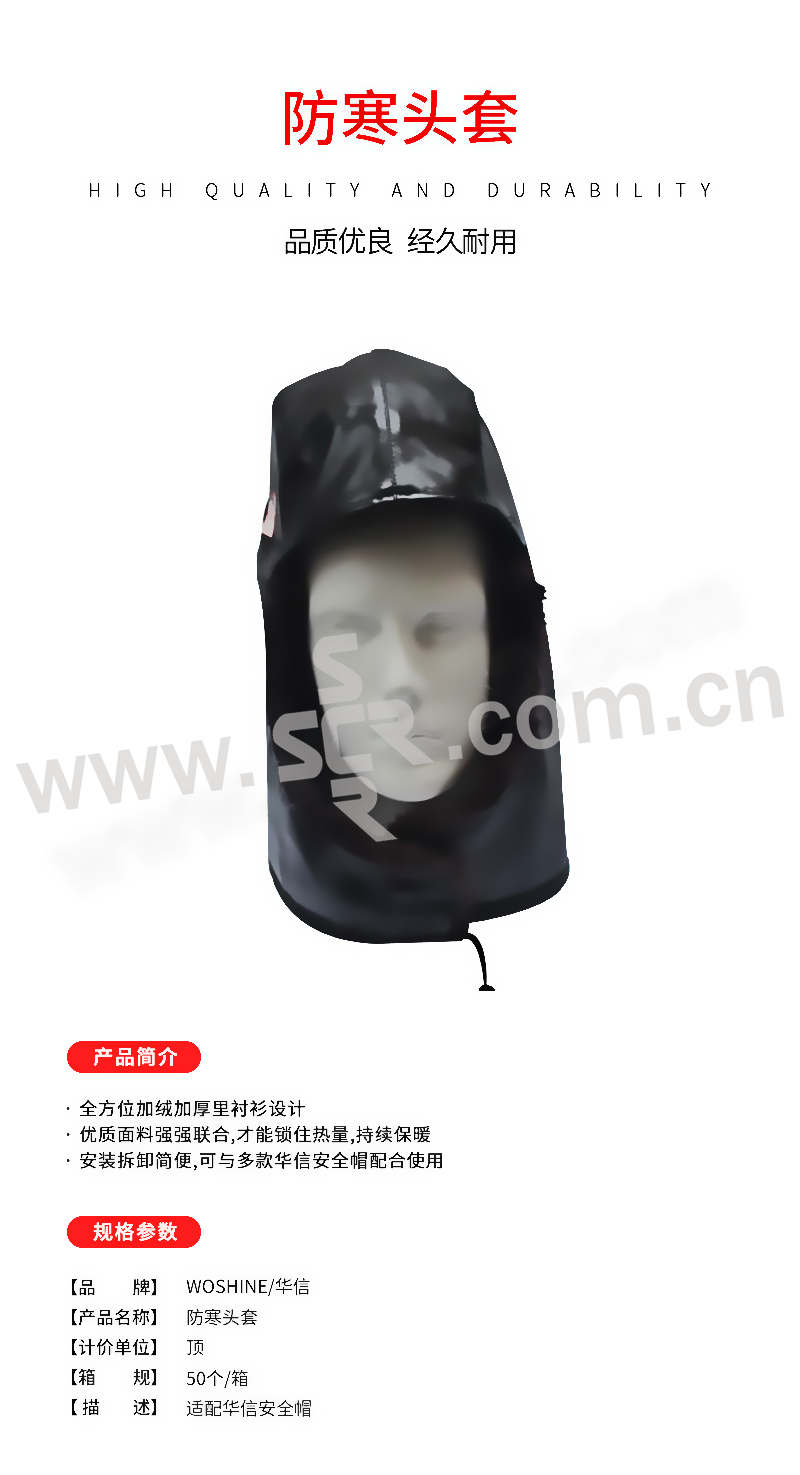 WOSHINE/华信 防寒头套 WS01.00.33.02 适配华信安全帽 1顶