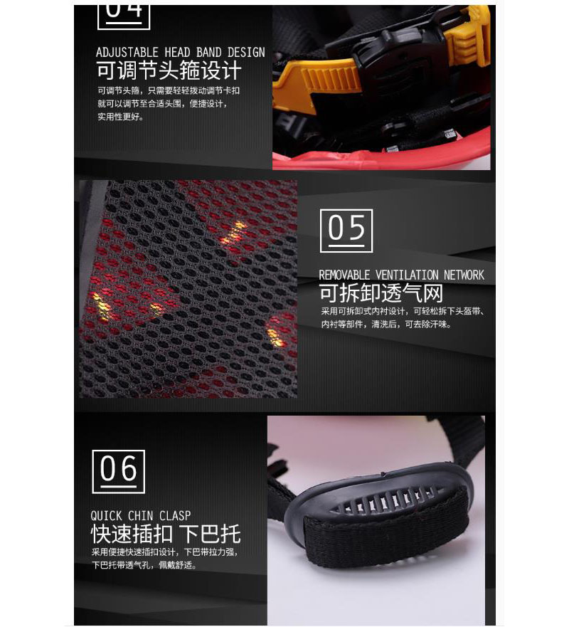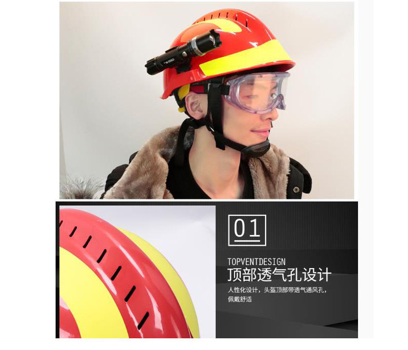 ·抗摔打,抗冲击,耐砸,耐磨,有较强的防热辐射和光辐射,有效防范有害液体进溅,可配备头灯和护目镜,头盔上有反光标识,头顶顶部有透气孔,透气性好