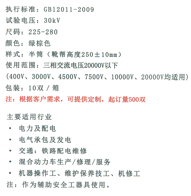 30kV绝缘靴(升级款)绿棕色 半筒 36码