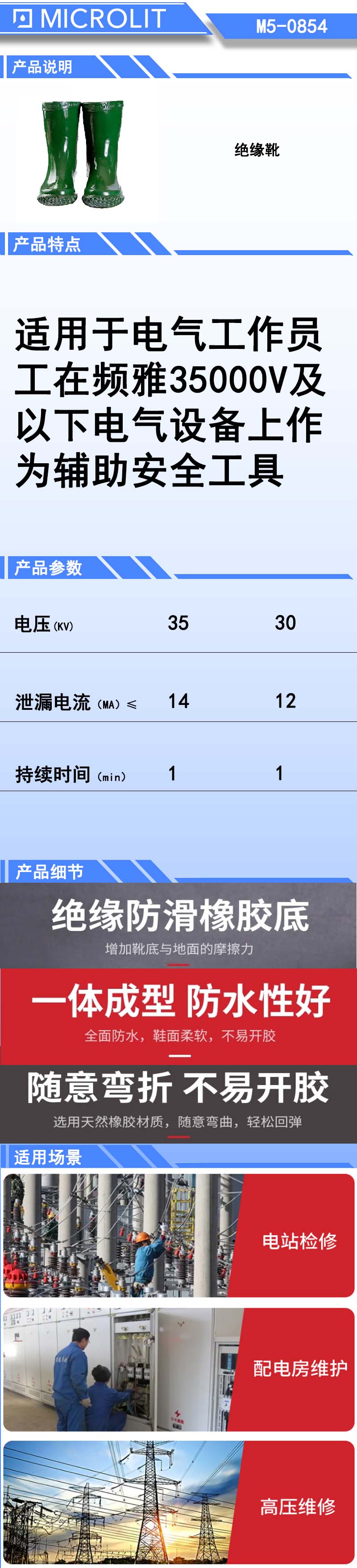 * 耐磨舒适 、安全绝缘、防水防滑