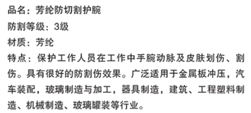 芳纶防切割护腕