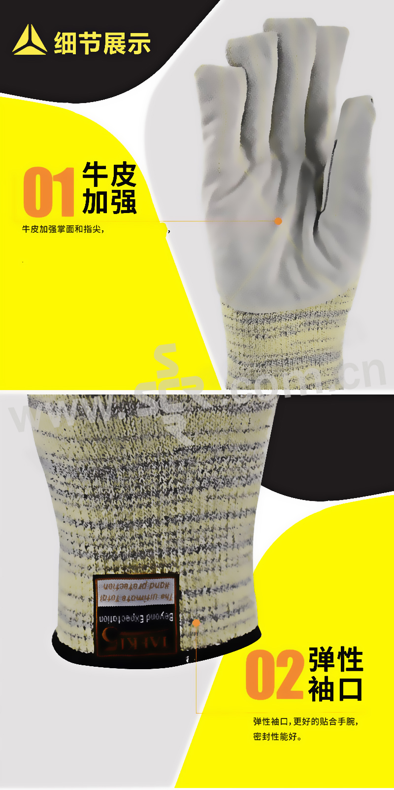 ·耐热芳纶防切割技术及高级牛皮加强掌面、指尖和虎口加强设计
