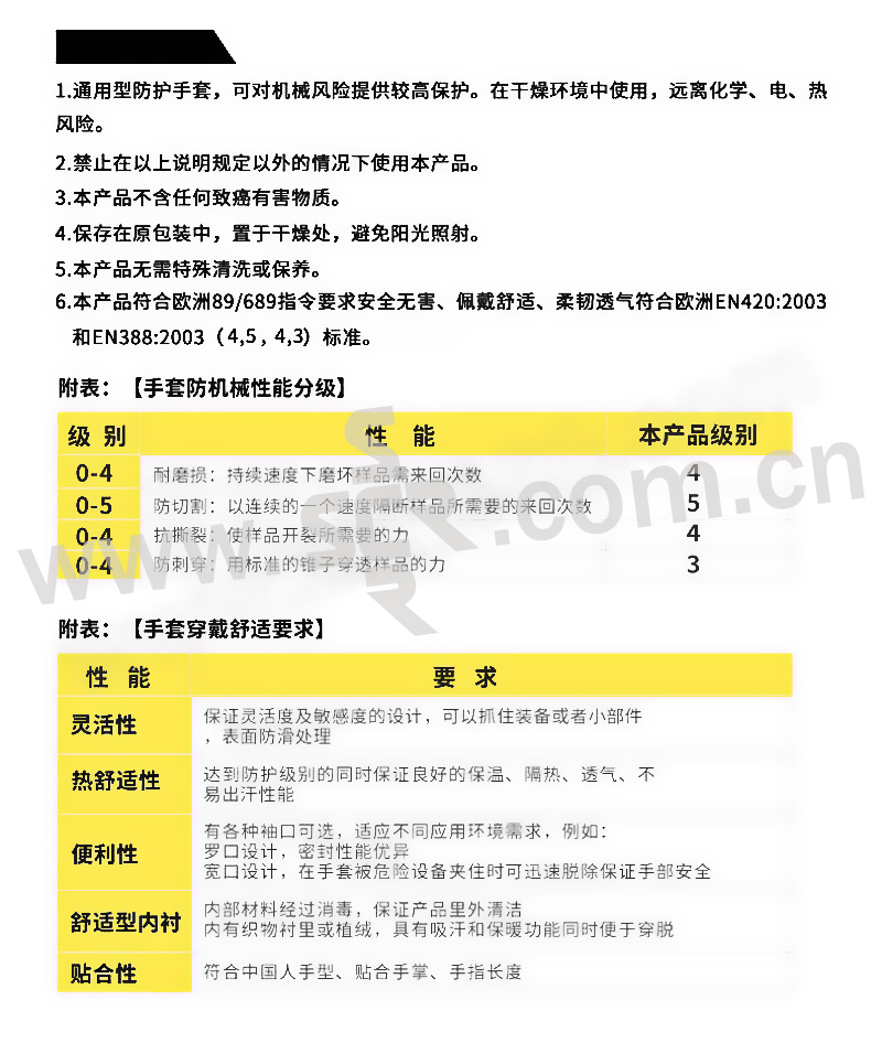 ·顶级防机械风险手套,提供更长使用寿命,可短时接触高温250°C