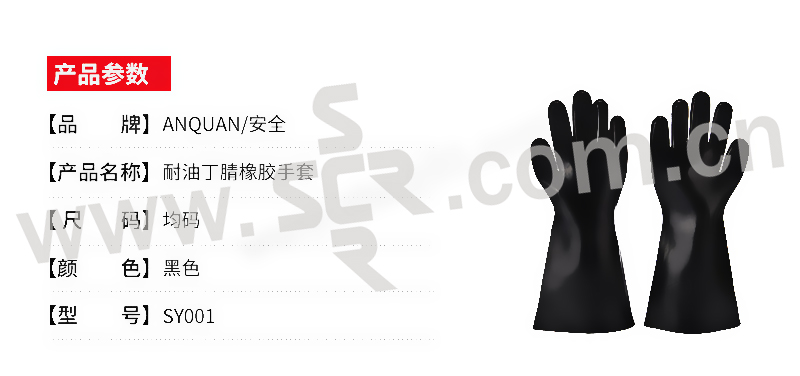 ANQUAN/安全 耐油丁腈橡胶手套 SY001 均码 黑色 400±15mm 1副
