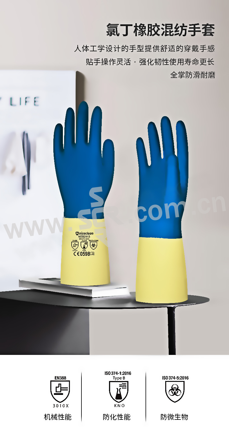 NICECLEAN/好清 加厚耐磨型工业手套 NEB2113 L(9) 102±5g 氯丁胶混+天然橡胶 棉绒内衬 1双