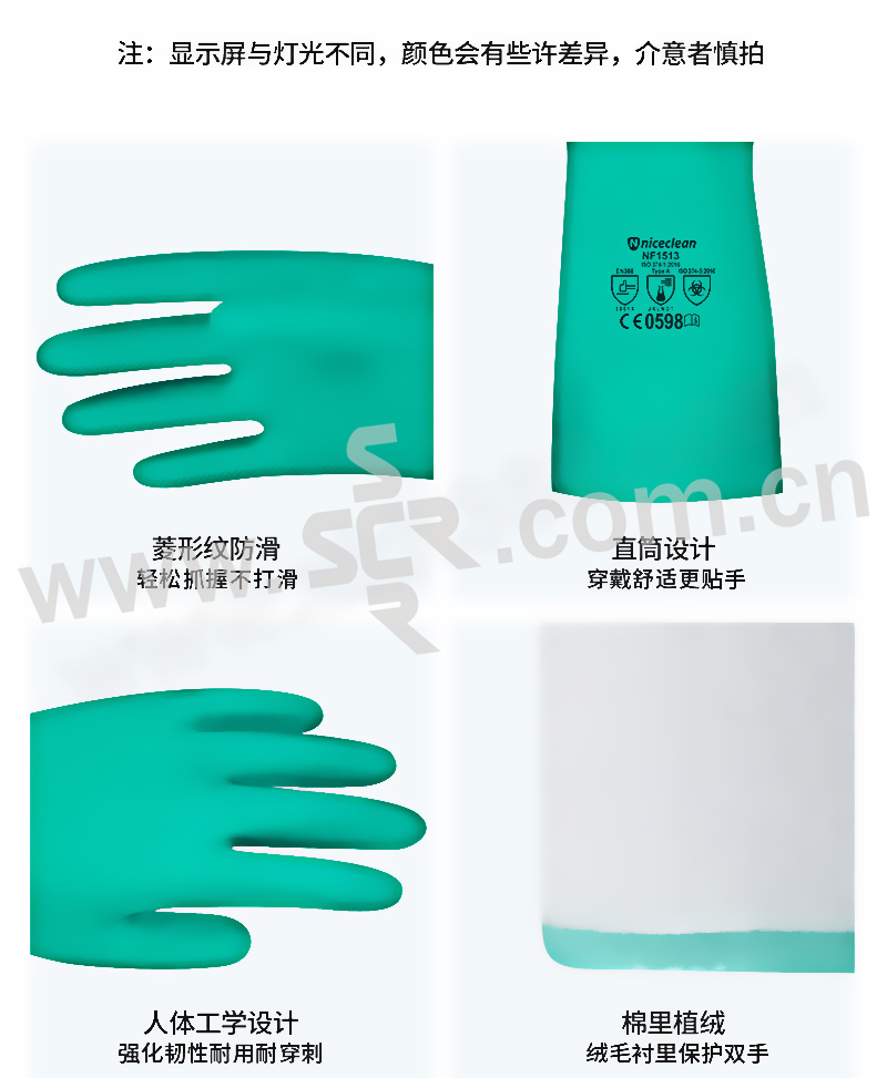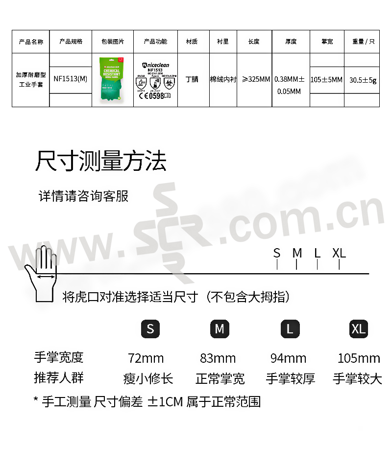 NICECLEAN/好清 耐酸碱丁腈手套 NF1513 M 61±5g 棉绒内衬 1双