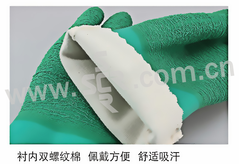 ·天然橡胶涂层,双螺纹棉衬里,长度310mm·手套上粗糙皱褶处理,具有出色的干湿抓握能力,同时仍能保护双手不受锋利边缘的损伤·符合人体工程学的设计使得手套更贴合手型并提供更安全的抓握力·良好的避震,防切割性能,更舒适·一定的防高温性能