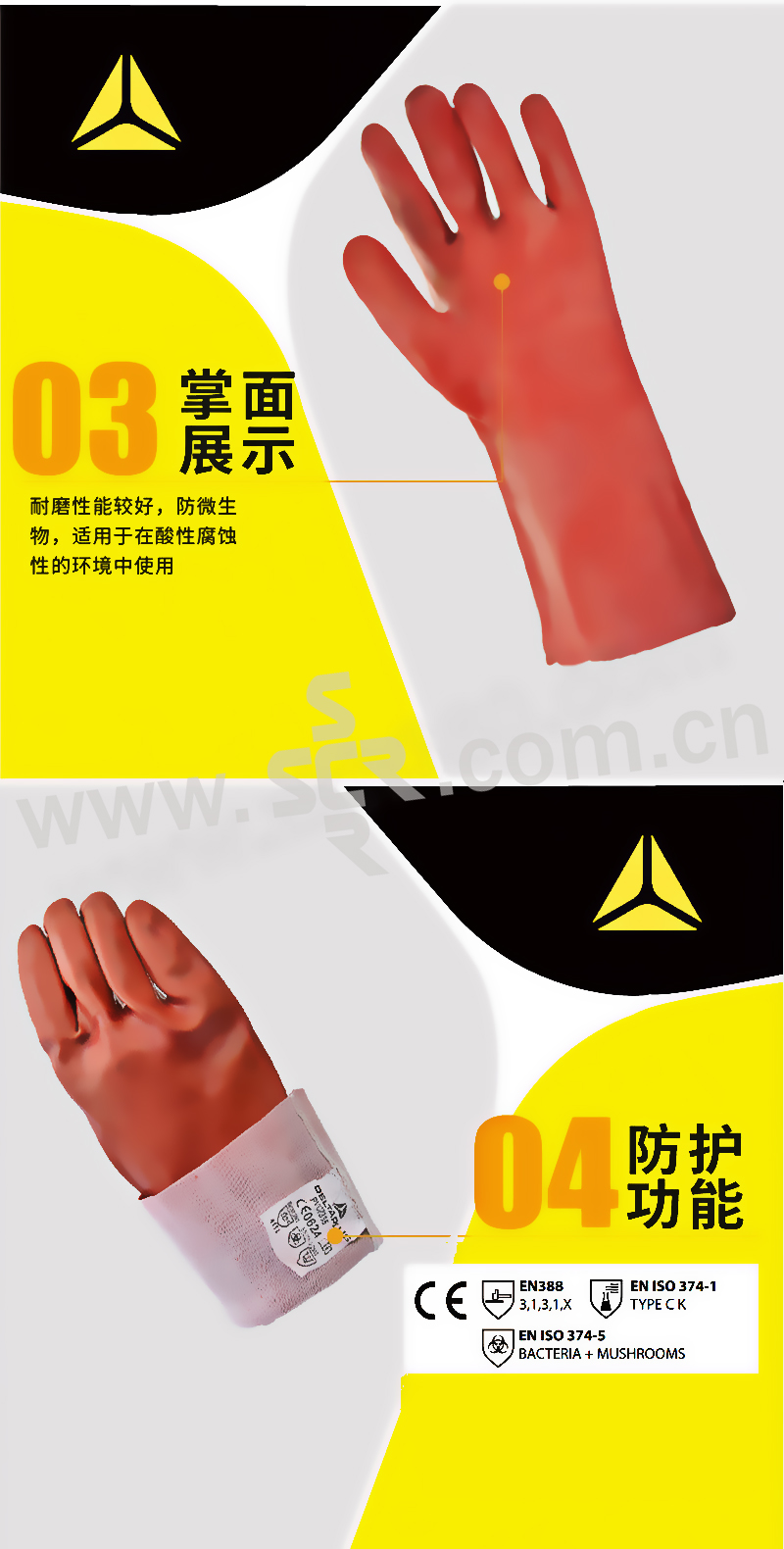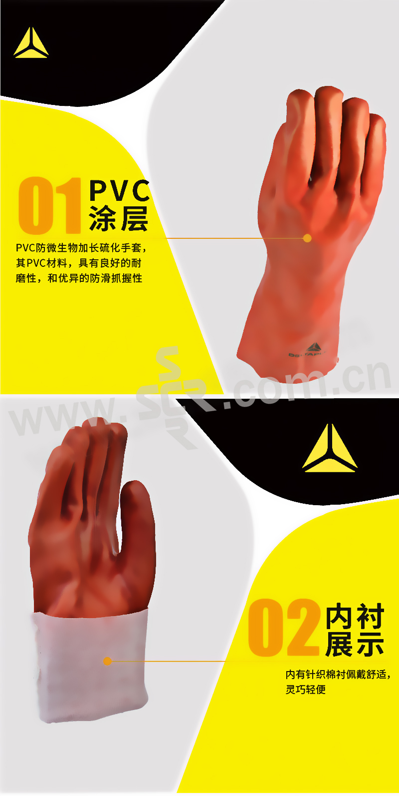 ·针织棉衬里,佩戴舒适,耐磨损,对机械风险提供高性能的保护,使用寿命长