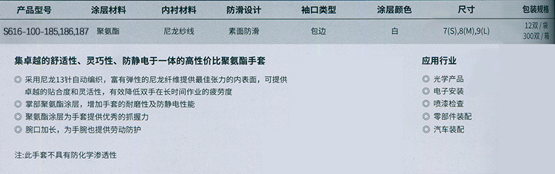 ·掌部聚氨酯涂层,增加手套的耐磨性及防静电性能