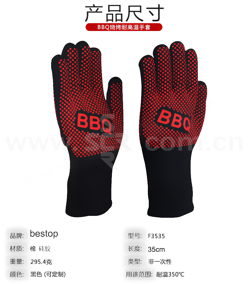 BESTOP/贝斯塔 350度双层棉BBQ手套 F3535 均码/XL 1副