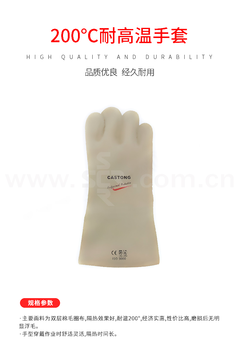 ·主要面料为双层棉毛圈布,隔热效果好,耐温200°,经济实惠,性价比高,磨损后无明显浮毛。
