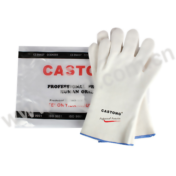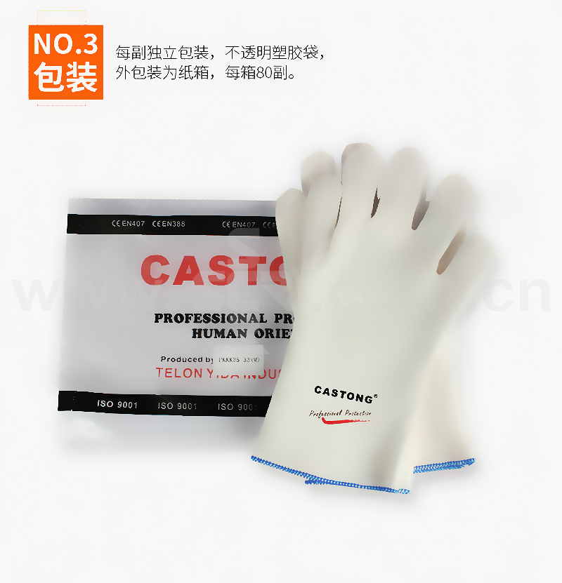 ·耐温200℃·长度:33cm,掌宽 12cm·颜色:米白色·灵活度:5级·PKKK系列采用聚酯纤维密织毯复合弹性织布,抗撕裂,灵活舒适,仿生学原理设计手型,与手指特别贴合,美观大方,且使用起来十分舒适