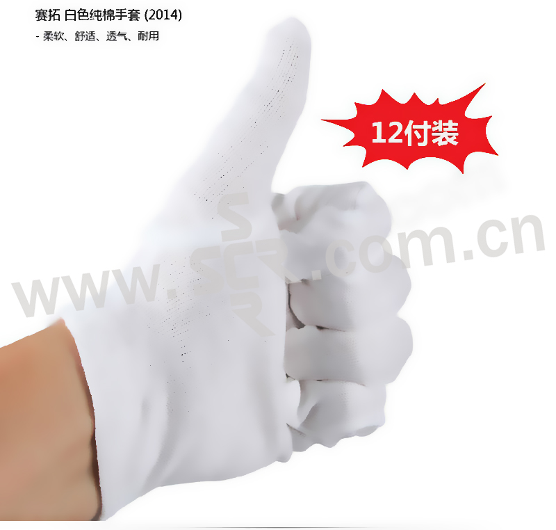 SANTO/赛拓 纯白色作业棉手套 2014 均码 1包