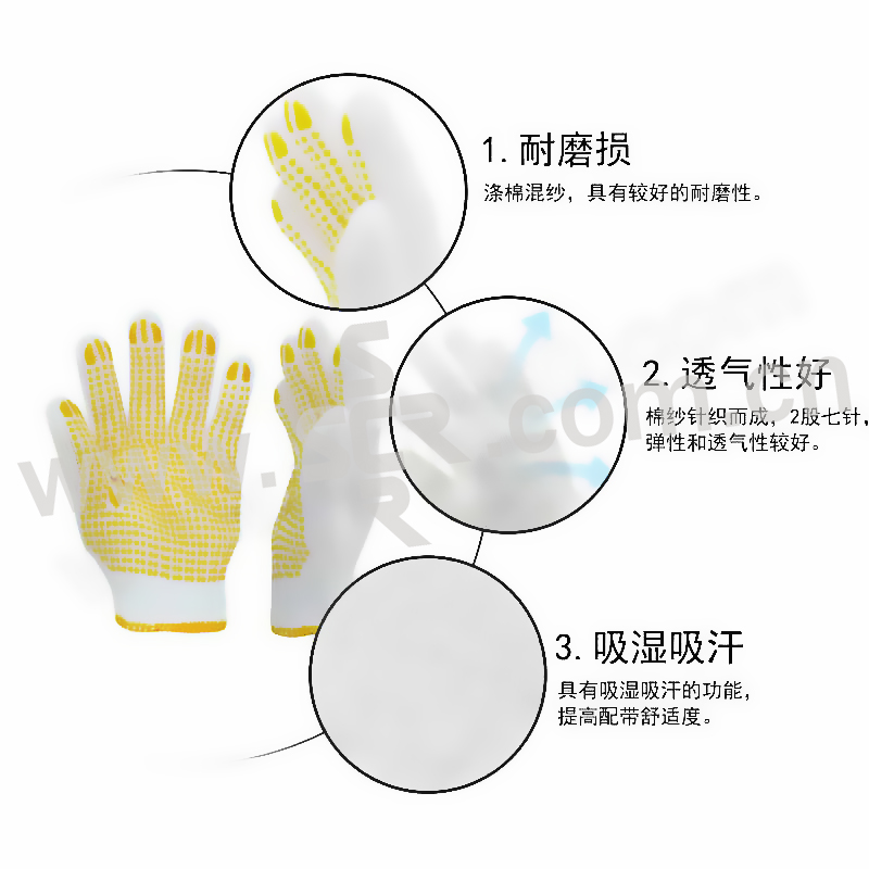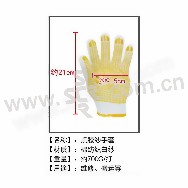 HT/华特 黄色点胶纱手套 70# 均码 21×9.5cm 1双