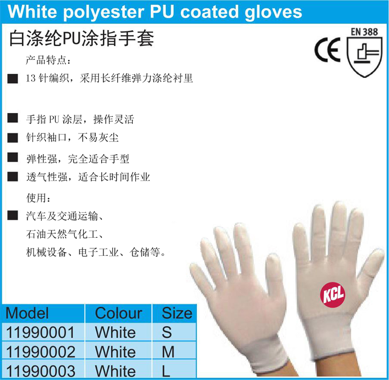 白涤纶PU涂指手套