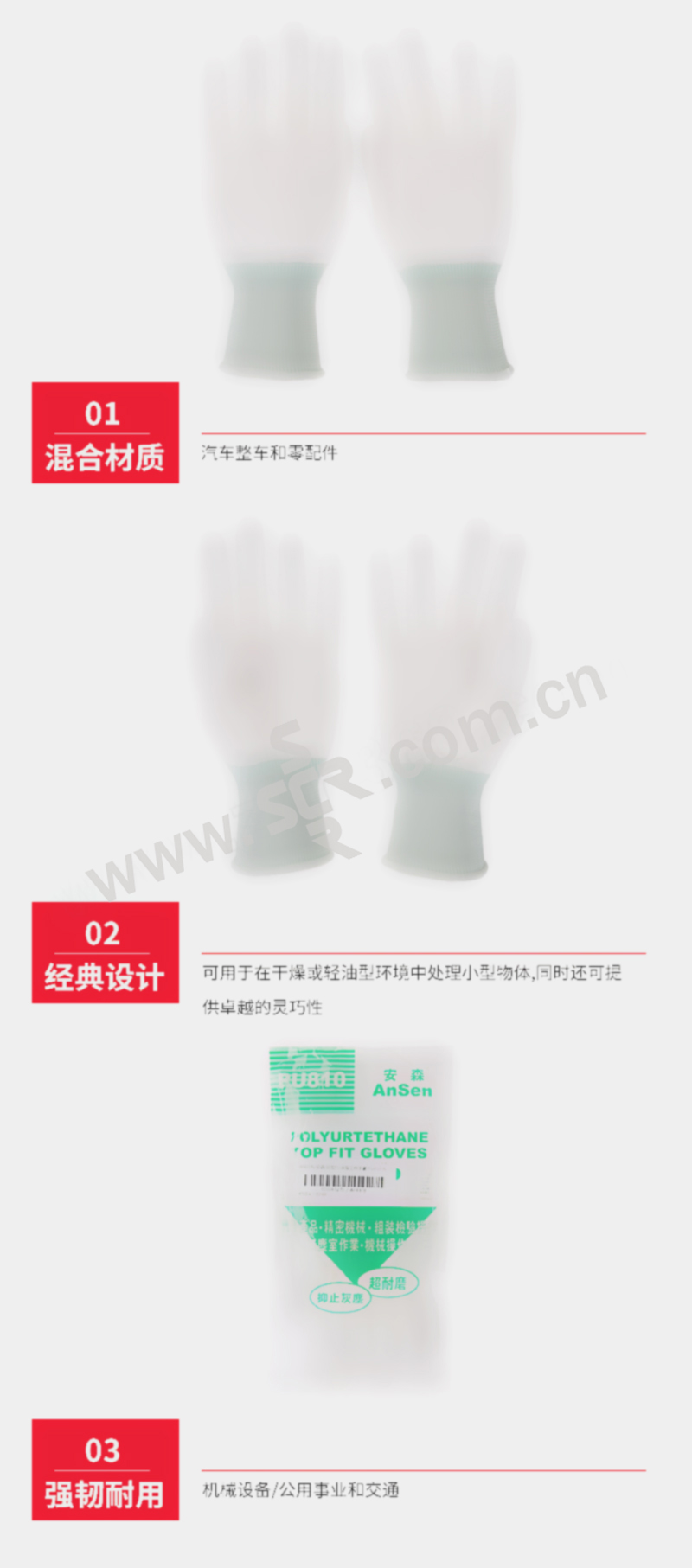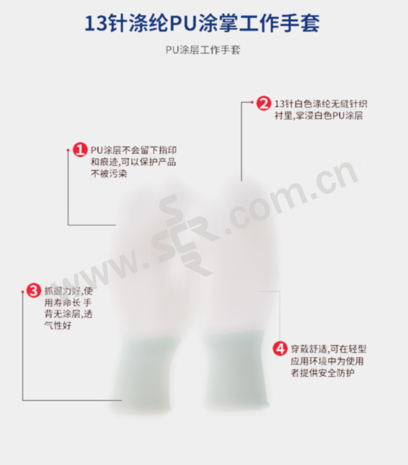 ·PU涂层不会留下指印和痕迹,可以保护产品不被污染
