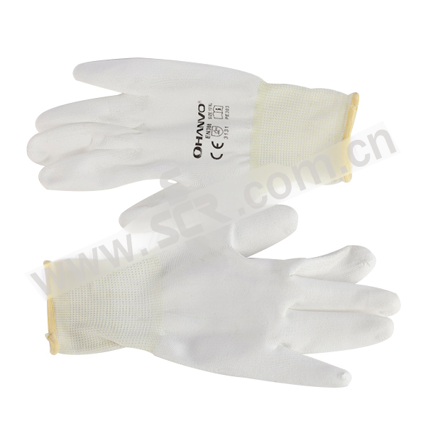 HANVO/恒辉 13针涤纶PU涂掌手套 PE303 8码 白色 1副