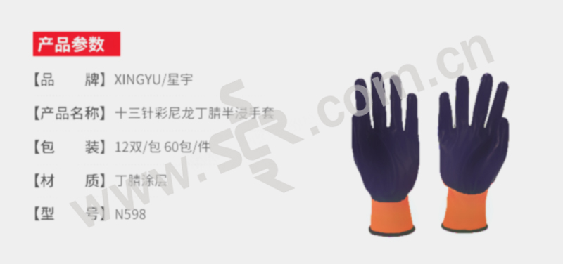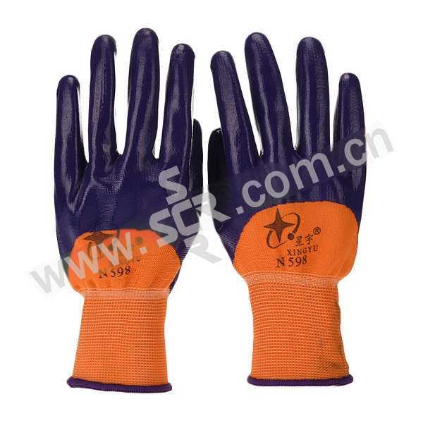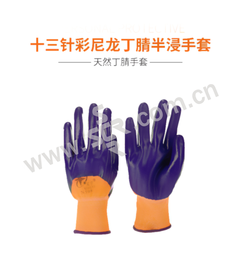 XINGYU/星宇 十三针彩尼龙丁腈半浸手套 N598 M(均码) 紫色涂层 1双