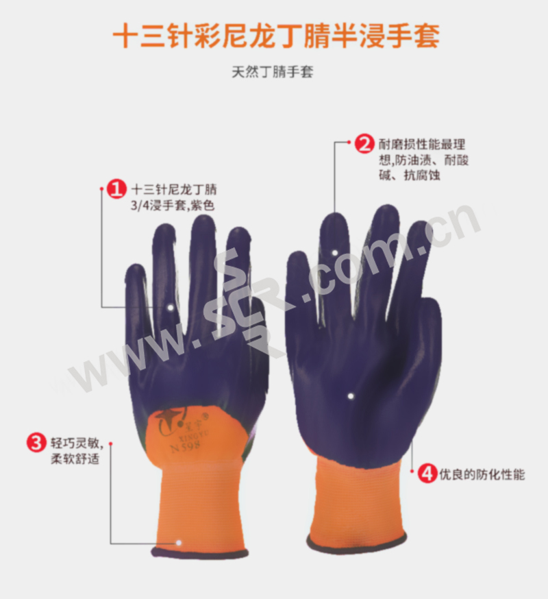 ·十三针尼龙丁腈3/4浸手套,紫色