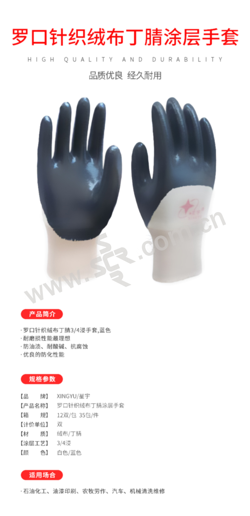 XINGYU/星宇 罗口针织绒布丁腈涂层手套 N608 9码 蓝色涂层 1双