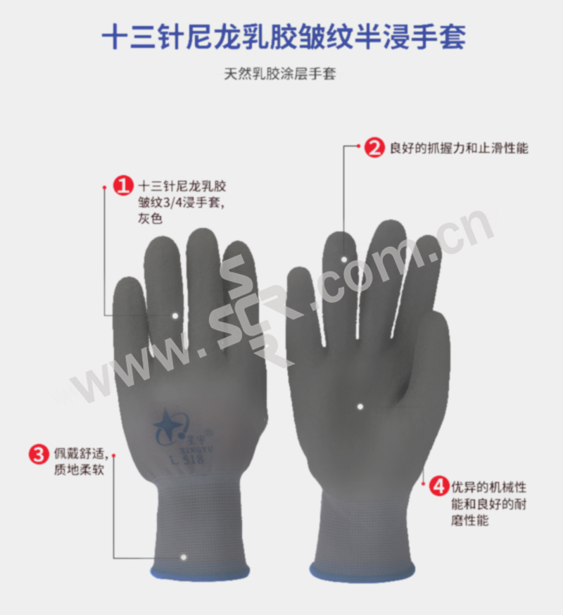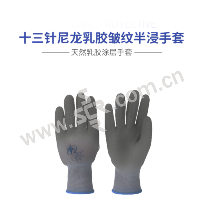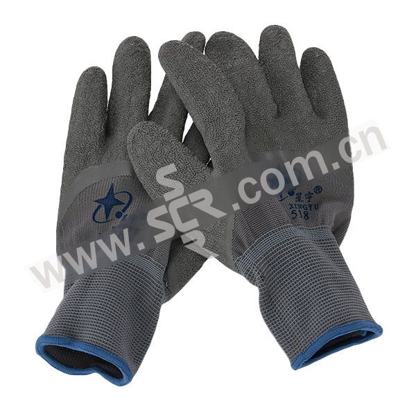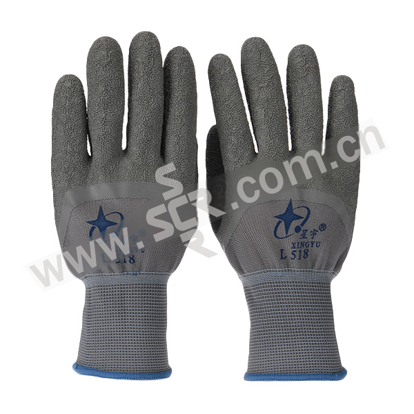XINGYU/星宇 十三针尼龙乳胶皱纹半浸手套 L518 均码 灰色涂层 1双