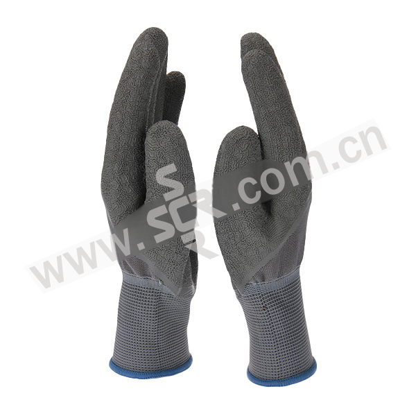 ·十三针尼龙乳胶皱纹3/4浸手套,灰色