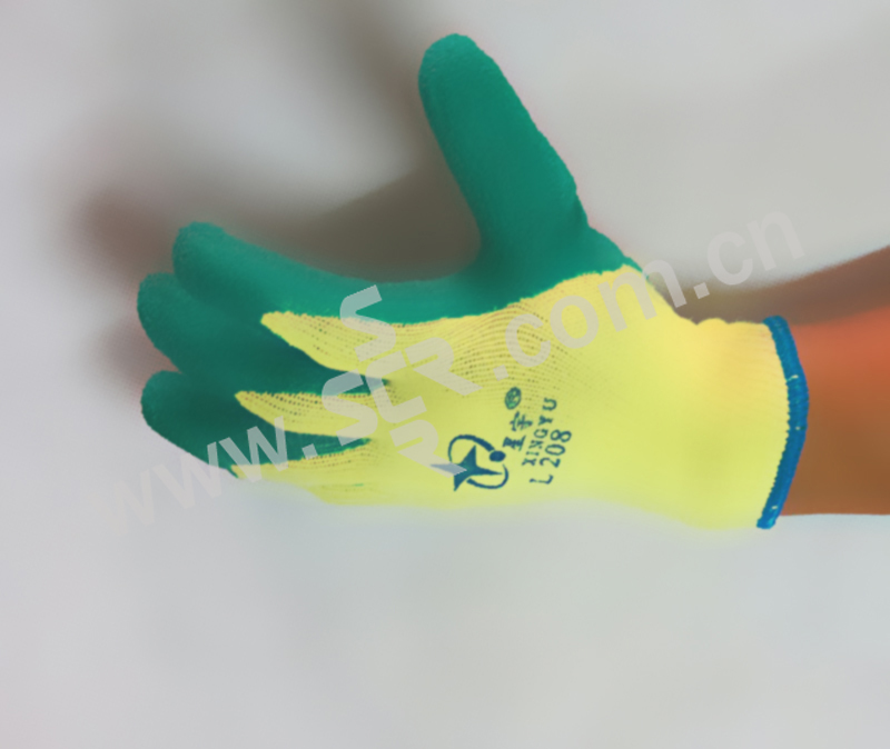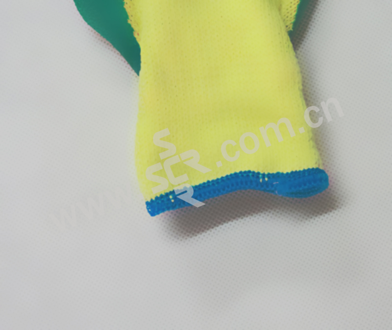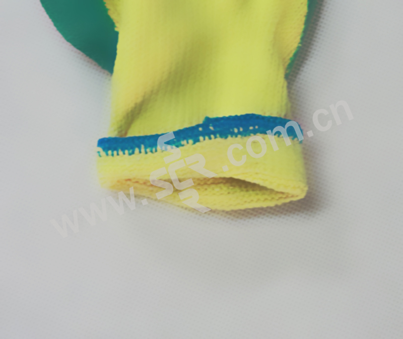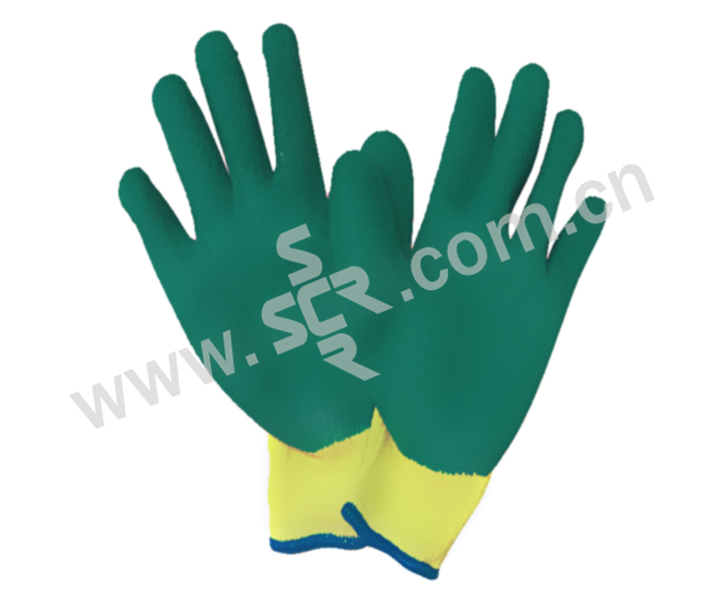 ·十针粗涤棉纱线乳胶皱纹手套,绿色