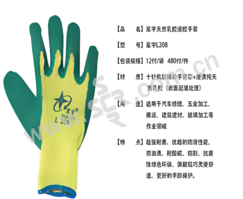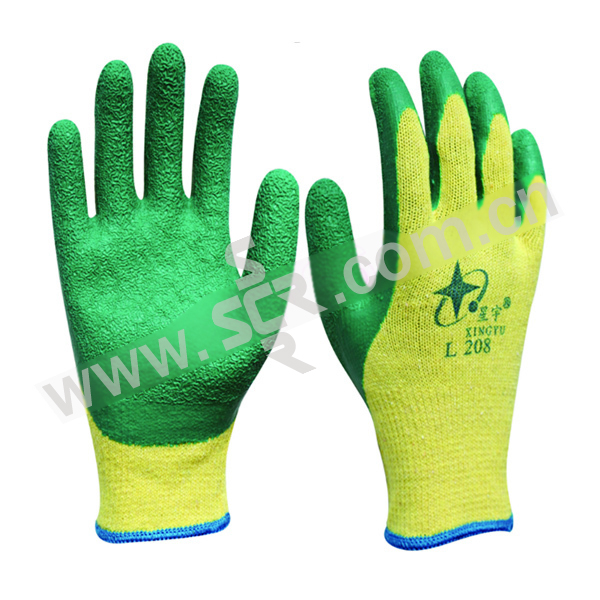 XINGYU/星宇 十针粗涤乳胶纱皱纹手套 L208 L(均码) 绿色涂层 1副