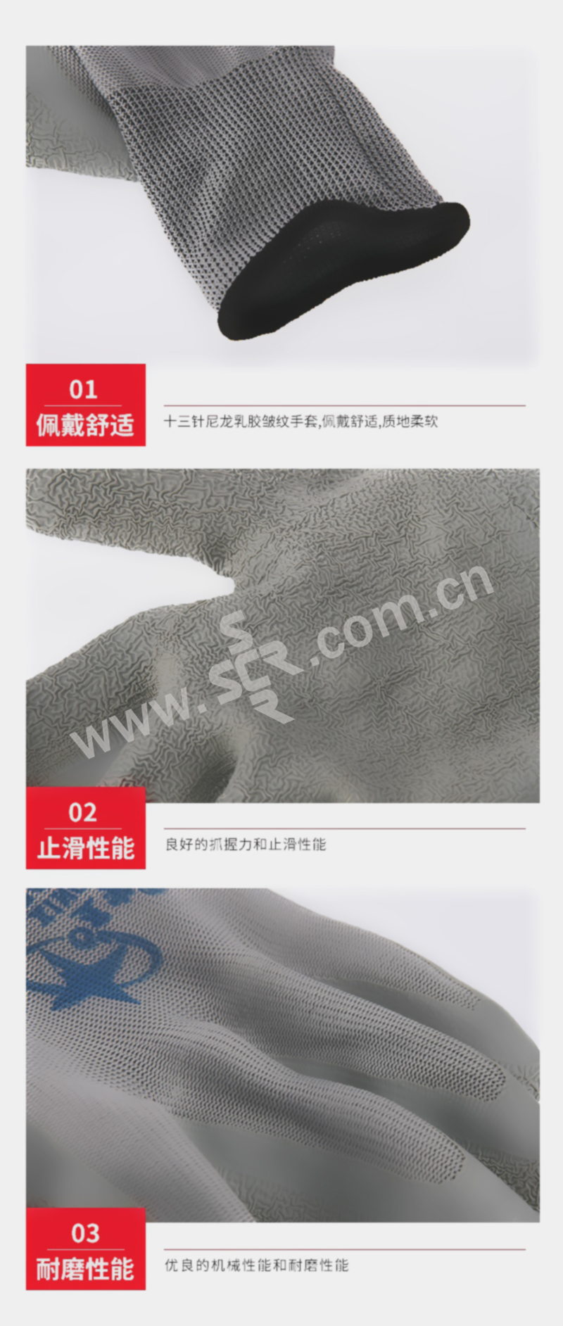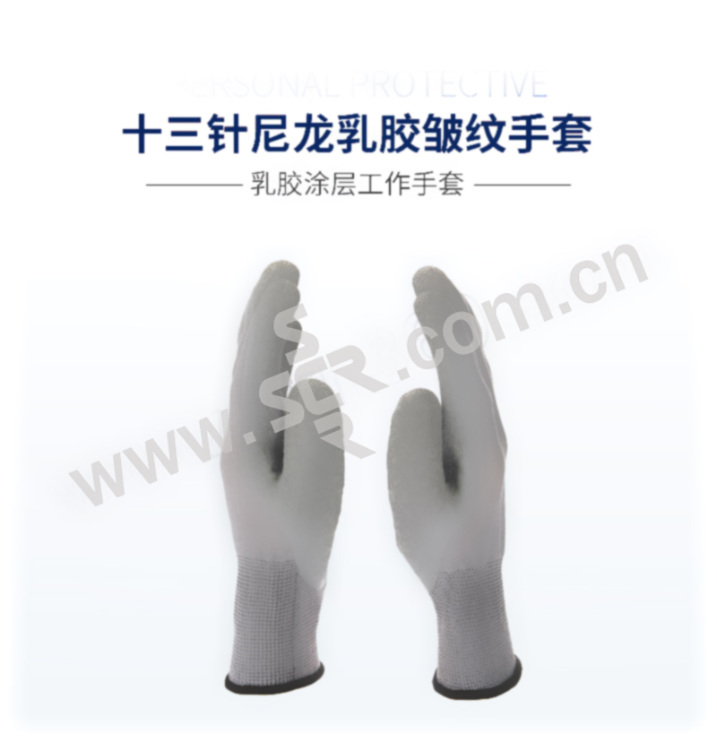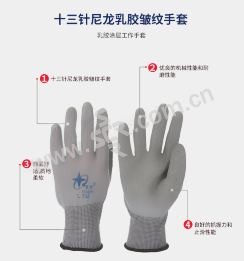 XINGYU/星宇 十三针尼龙乳胶皱纹手套 L508 8码 灰色 1双