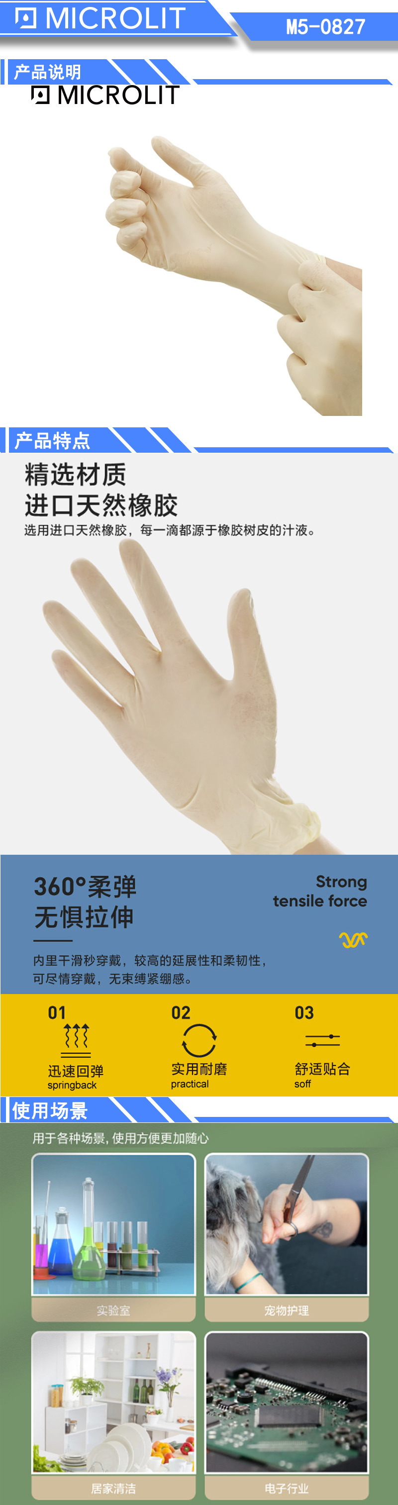 * 左右手通用,具有超强弹性,穿戴贴合舒适,经过 双面氯化处理