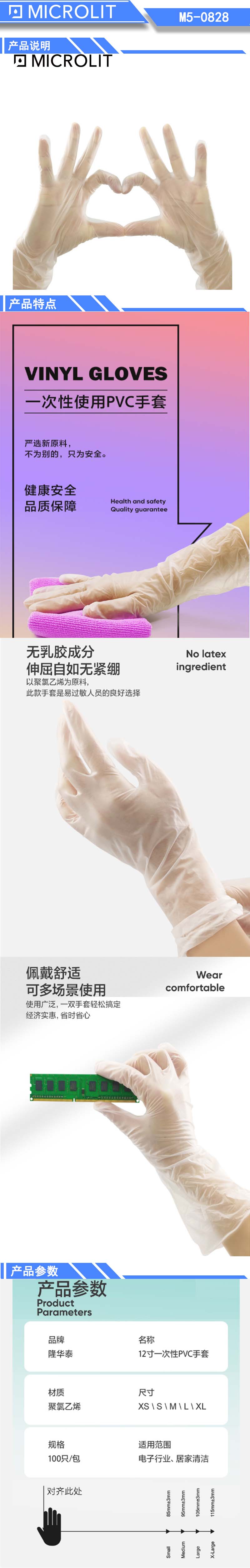 * 选用新料材质,微弹性易穿戴,贴合手型