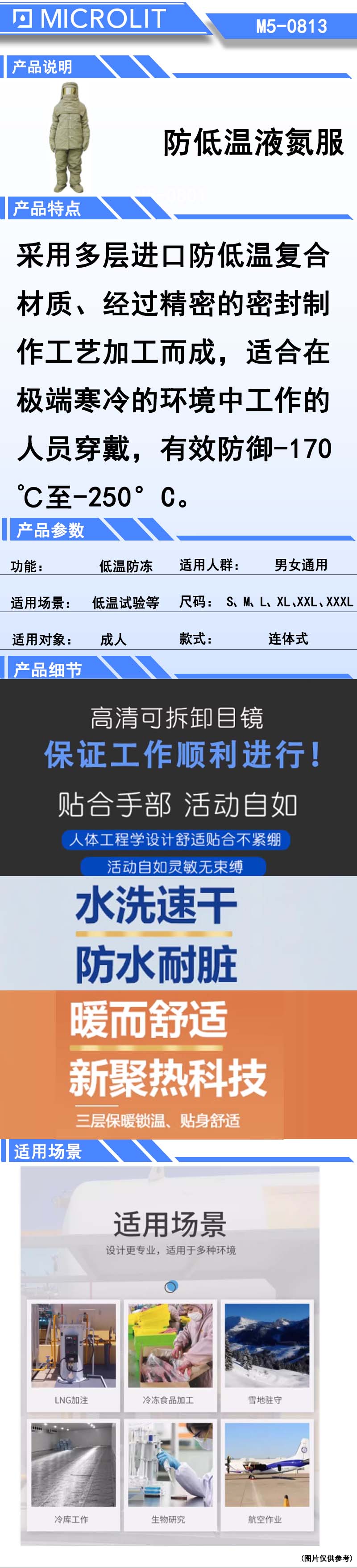 采用多层进口防低温复合材质、经过精密的密封制作工艺加工而成,适合在极端寒冷的环境中工作的人员穿戴,有效防御-170℃至-250℃。
