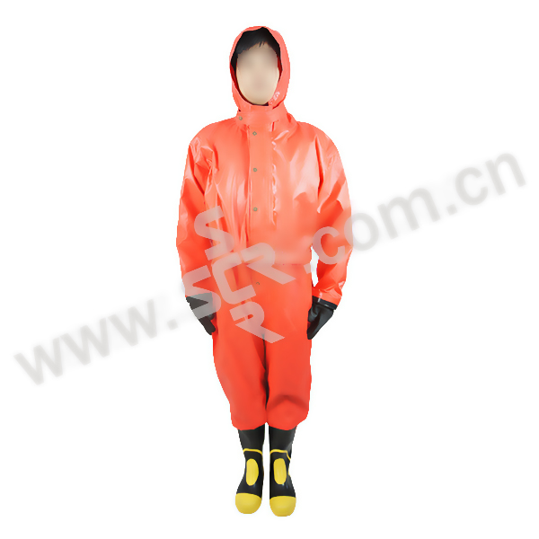 ·采用pvc双面涂覆织物面料制作,耐酸碱·整套防化服是由带帽连体衣、防化手套、防化胶靴组成·手套采用卡环可拆卸式连接,既能保证气密性,又便于更换·缝纫接缝全部采用内外密封条密封,确保服装的密封性能·具有防酸碱、阻燃等性能。可在汽油、丙酮、醋酸乙酯等有机介质以及硫酸、盐酸、硝酸、磷酸、氢氧化钠等腐蚀性液体场合进行抢险救援作业·防酸渗透性能:面料分别在80%H2SO4、60%HNO3、30%HCI的酸液下1h不渗透·防碱渗透性能:面料在6.1mol/L NaOH的碱液下1h不渗透·阻燃性能:损毁长度≤10cm,续燃时间≤5s;阴燃时间≤10s且无熔滴·耐热老化性能:125℃×2h不粘、不脆·耐寒性能:-15℃×5 min,折叠180度无裂痕·耐汽油性能:浸120# 汽油 60min,无裂纹、不发粘·鞋底耐穿刺性能:≥780N 面料的断裂强力:经纬向≥400N 鞋底的电绝缘性能≥5000V
