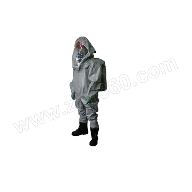 ·由多层隔离膜与耐久的1.5盎斯聚丙烯复合而成·接缝结构:热合胶带缝合(H/T)·包裹式防喷溅全罩式防护服,后穿式背部加大背袋·加大广角视窗PVC面罩,一个排气孔·附连体靴套与防化靴保护盖·腕部有松紧带设计,双层拉链防护盖,与防护服同材质拉链,加黏扣带补强